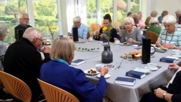 Eftermiddagen byder på kaffe og kage og hyggeligt samvær, med et lille indlæg, ofte ved en beboer fra lokalområdet. Fri adgang, tilmelding ikke nødvendigt. Alle er velkomne.