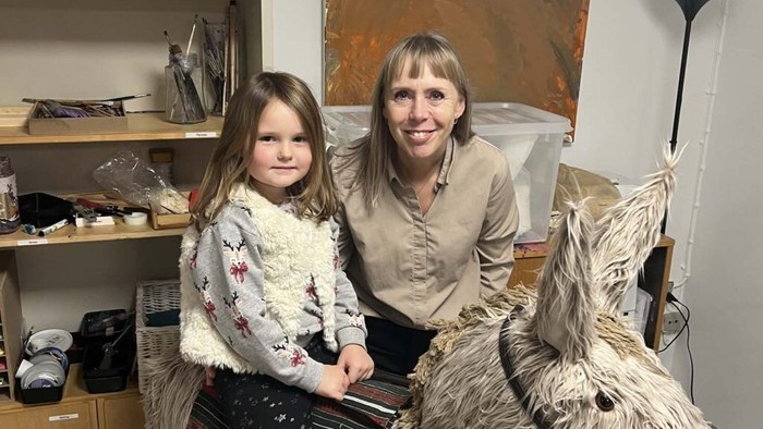 "Vores sognepræst Rosa hev fat i mig. Hun fortalte at de havde et æsel, som var slidt og spurgte om jeg kunne lappe det. Vi kiggede på æslet, men det kunne ikke lappes efter 20 års brug af en masse søde unger. Vi kiggede på hinanden og sagde, at vi laver et nyt," fortæller Heidi Falk.