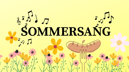 Vi synger sommeren ind og mødes kl. 18.00, hvor grillen er tændt og pølserne lagt på. Bagefter samles vi om flygelet og lader glade sommersange sætte sindet i sving.