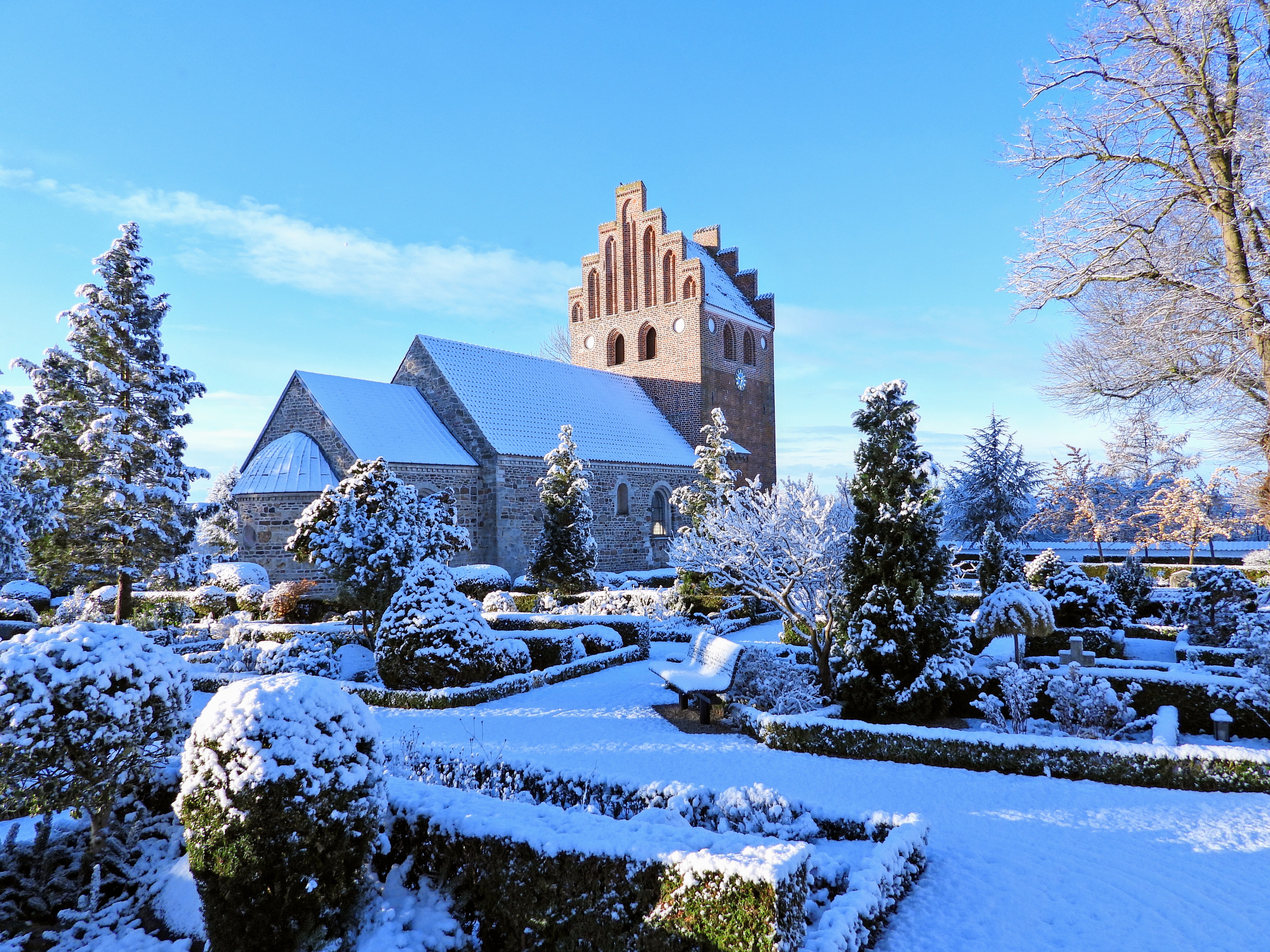 Kirken har gennem tiden ikke blot været gudstjenestested, men også stedet for sognets døde. I ældre tid blev fremtrædende folk i sognet begravet under kirkegulvet. Det minder ligstenene i våbenhuset os om. Og i alle århundrederne har jorden omkring kirken været begravelsesplads. Den er omkranset af den hvidkalkede kirkegårdsmur, der for en dels vedkommende er fra middelalderen. Det gælder også den lille låge mod vest i nordmuren.